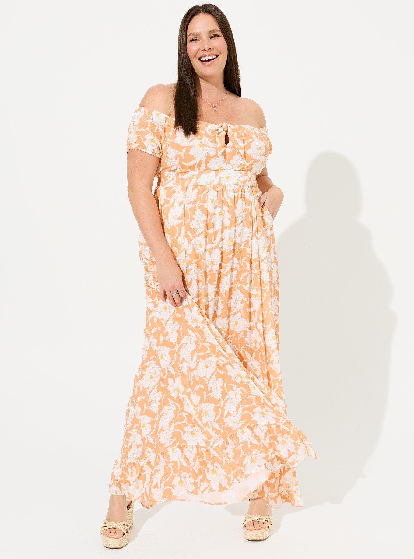 Plus Size Maxi Gauze Off Shoulder Tie Front Dress Torrid